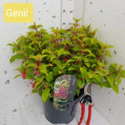 This relatively new variety has deep red flowers in flat heads which hold their colour well – very attractive – dead head regularly.