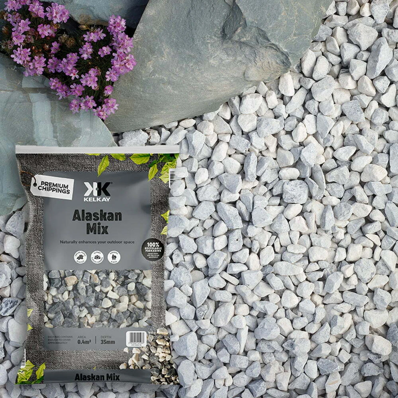 The Alaskan Mix chippings are great for borders, patios, walkways and driveways. The stones are ideal for adding texture and definition to your outdoor areas.
